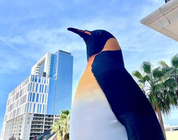 Giant penguins are making their way to Orlando’s aquatic park — and also to its downtown rooftops. To mark the addition of (real) Emperor Penguins to SeaWorld Orlando, the park is teaming up with Creative City Project to bring massive inflatable penguins to various rooftops in downtown. It’s the latest installment of the arts organization’s “Big City Birds,” which brought giant pigeons to town last year. Now through June 19, three Emperor Penguins — two 14-foot-tall adults and one 10-foot-tall b...